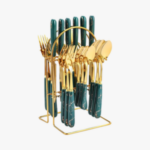 - 【Durable & Healthy】this flatware set is Made of high-quality stainless steel with Polished and gold-plated. Dishwasher Safe for Easy Cleaning,The handle is wrapped in ceramic and feels very comfortable the durable Metal sets are used after a lot of use Will not bend or break; durable Metal sets can provide you with good service for many years.